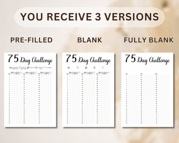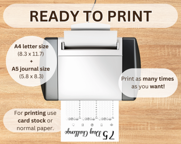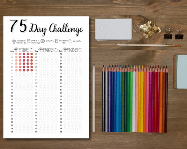 ✔️ A4 75 Day Challenge Planner Template printable (blank and pre-filled)