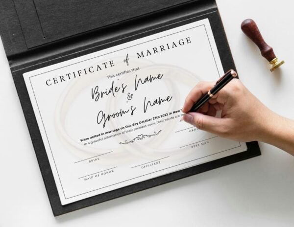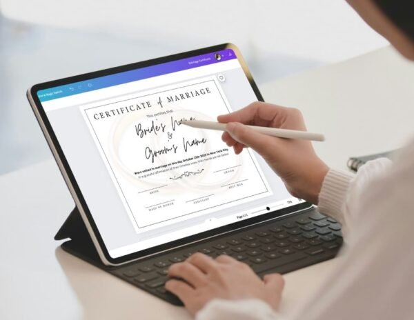 • The PDF file comes with a pre-link to the Canva platform, allowing you to comprehensively edit your Marriage Certificate Samples.
