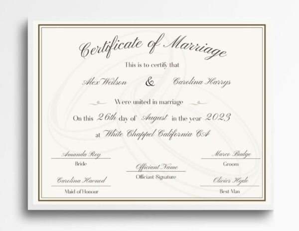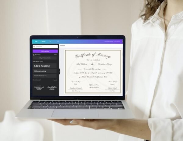 - The PDF file comes with a pre-link to the Canva platform, allowing you to comprehensively edit your Marriage Certificate Samples.
