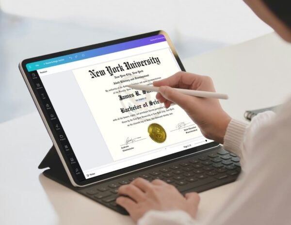 - The PDF file comes with a pre-link to the Canva platform, allowing you to comprehensively edit your General education diploma.