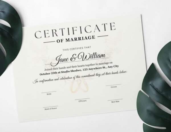 Celebrate your special moments with our custom fake virtual marriage certificate template! Perfect for couples who want to add a touch of fun and creativity to their wedding celebrations, this elegant and professional template is easy to personalize with your names, wedding date, and special messages. Instantly downloadable and printable, our virtual marriage certificate template is ideal for virtual ceremonies, themed parties, or as a unique gift for friends. Make your event memorable with a beautifully designed certificate that adds a unique twist to traditional wedding documents.