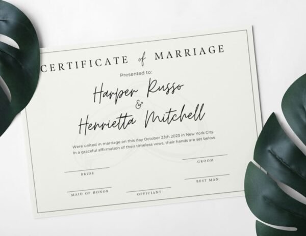 - A fully editable virtual wedding certificate, adhering to the standard US size of 11*8.5 inches.